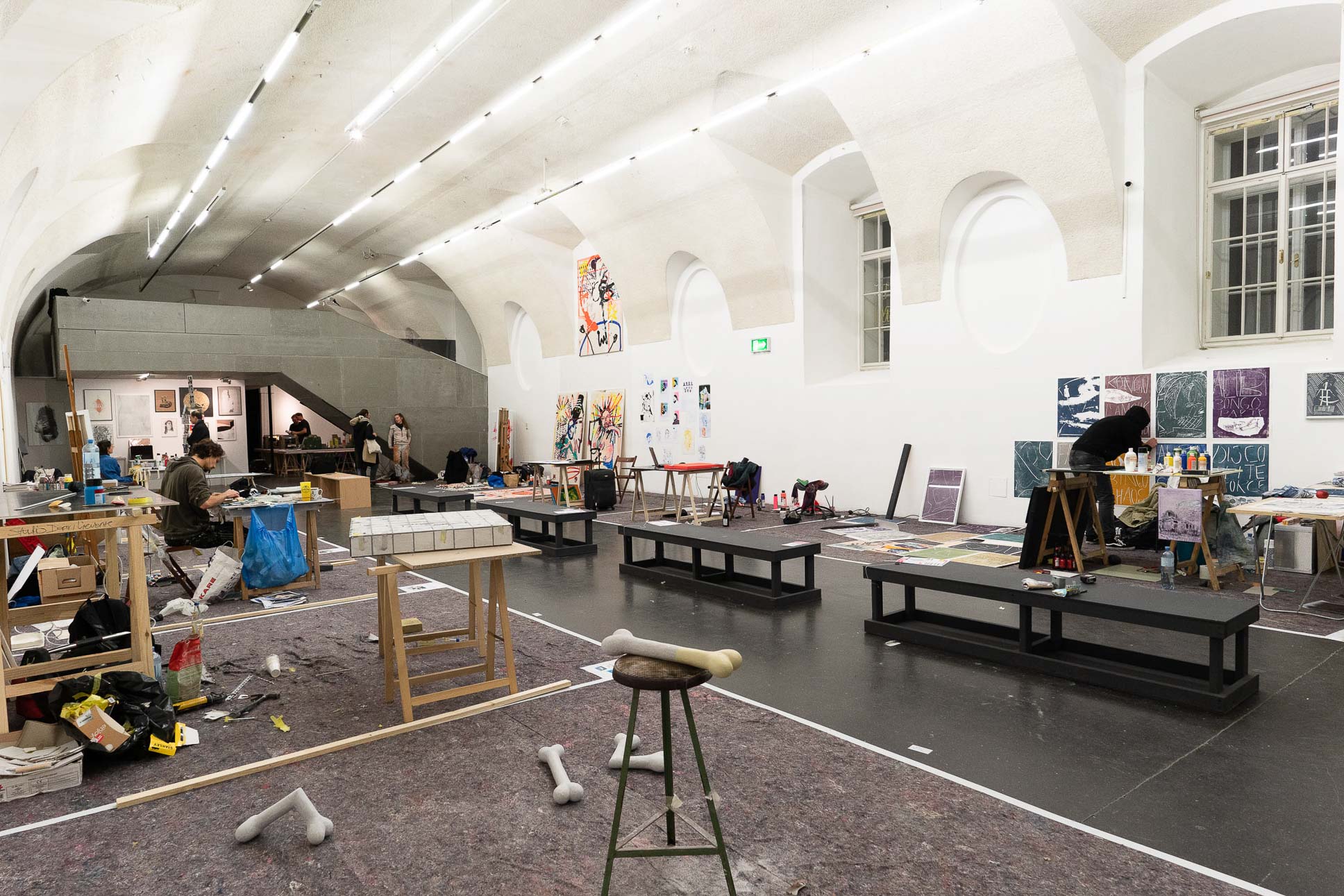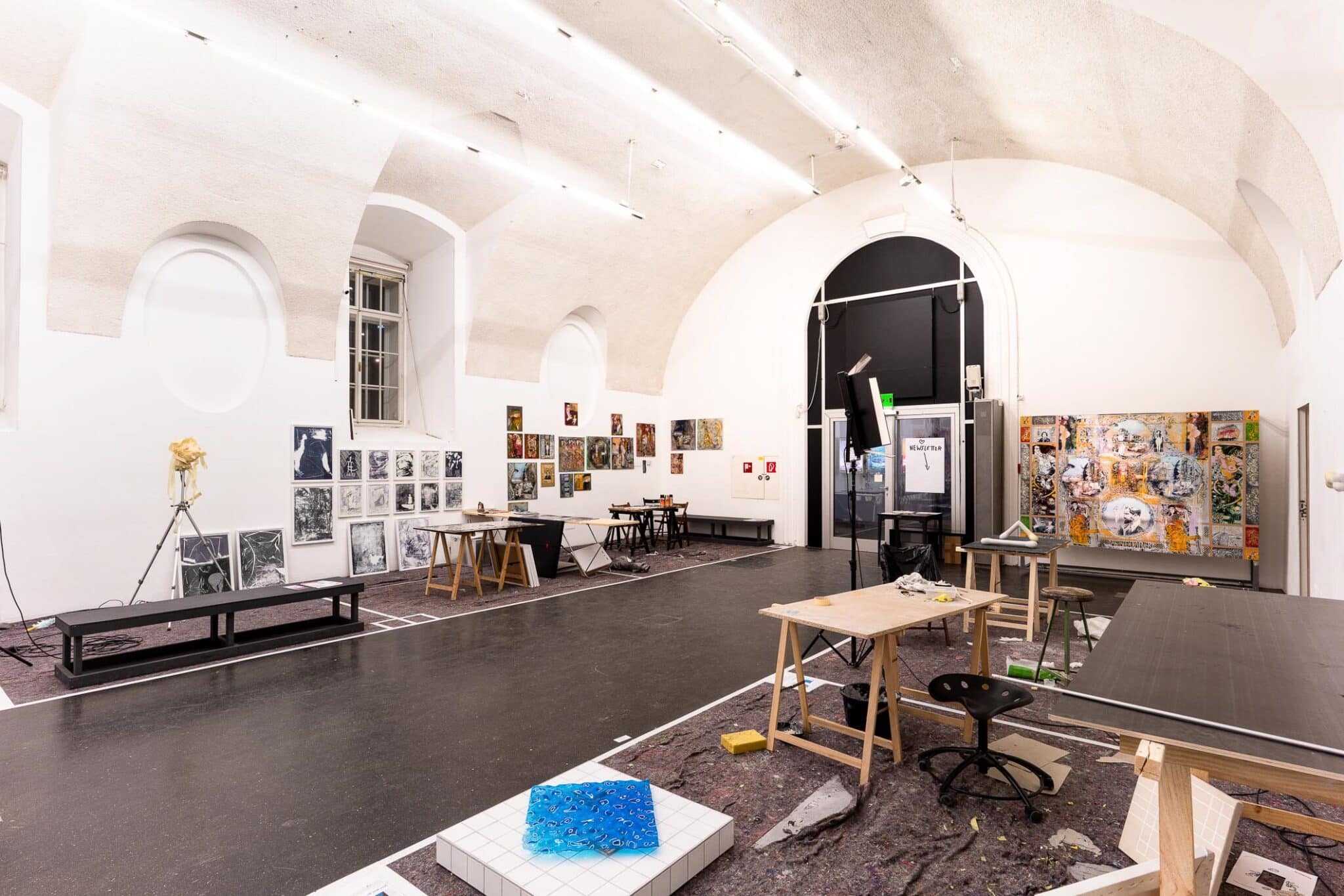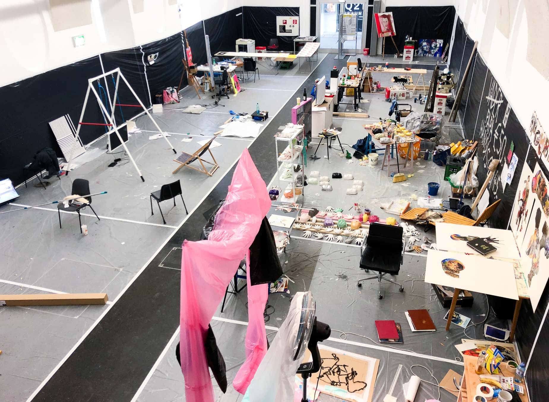 Seit 2018 verwandelt das Living Studio den frei_raum Q21 Exhibition Space jährlich in ein öffentlich erlebbares Atelier mit anschließender Präsentation der vor Ort enstandenen Werke.