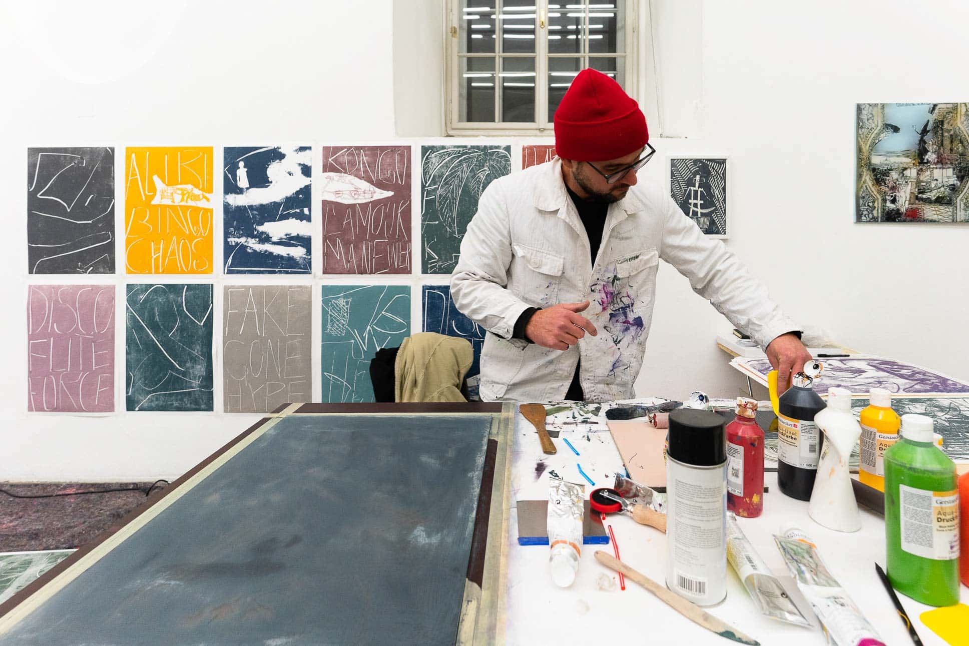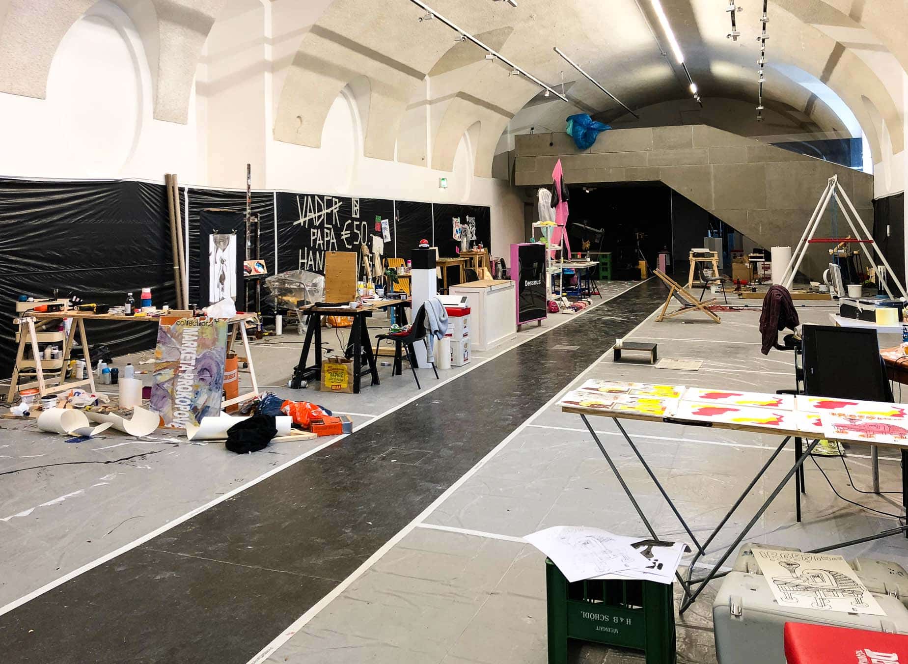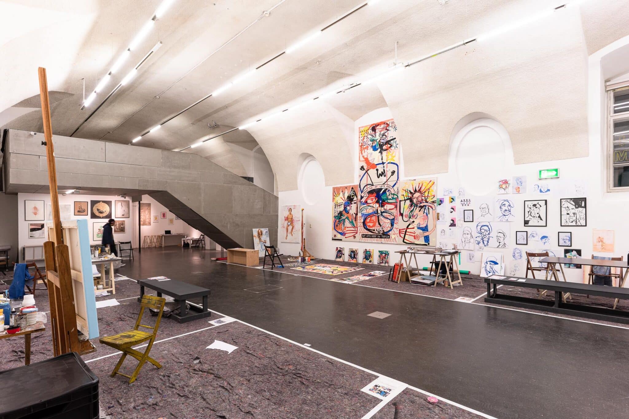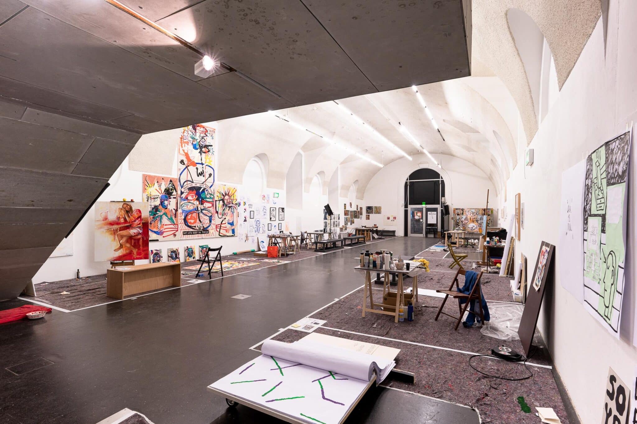 Seit 2018 verwandelt das Living Studio den frei_raum Q21 Exhibition Space jährlich in ein öffentlich erlebbares Atelier mit anschließender Präsentation der vor Ort enstandenen Werke.