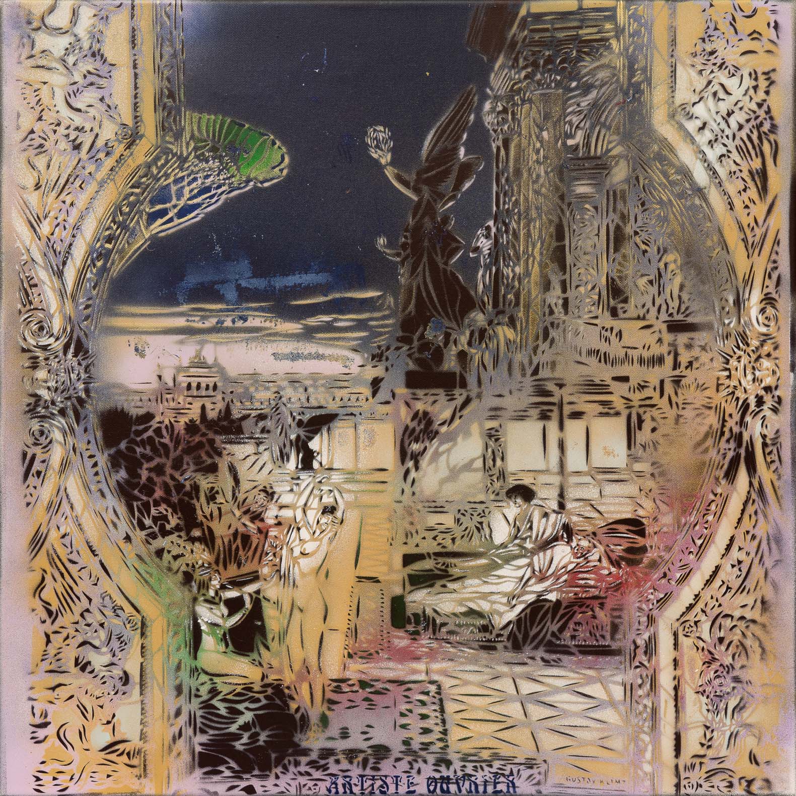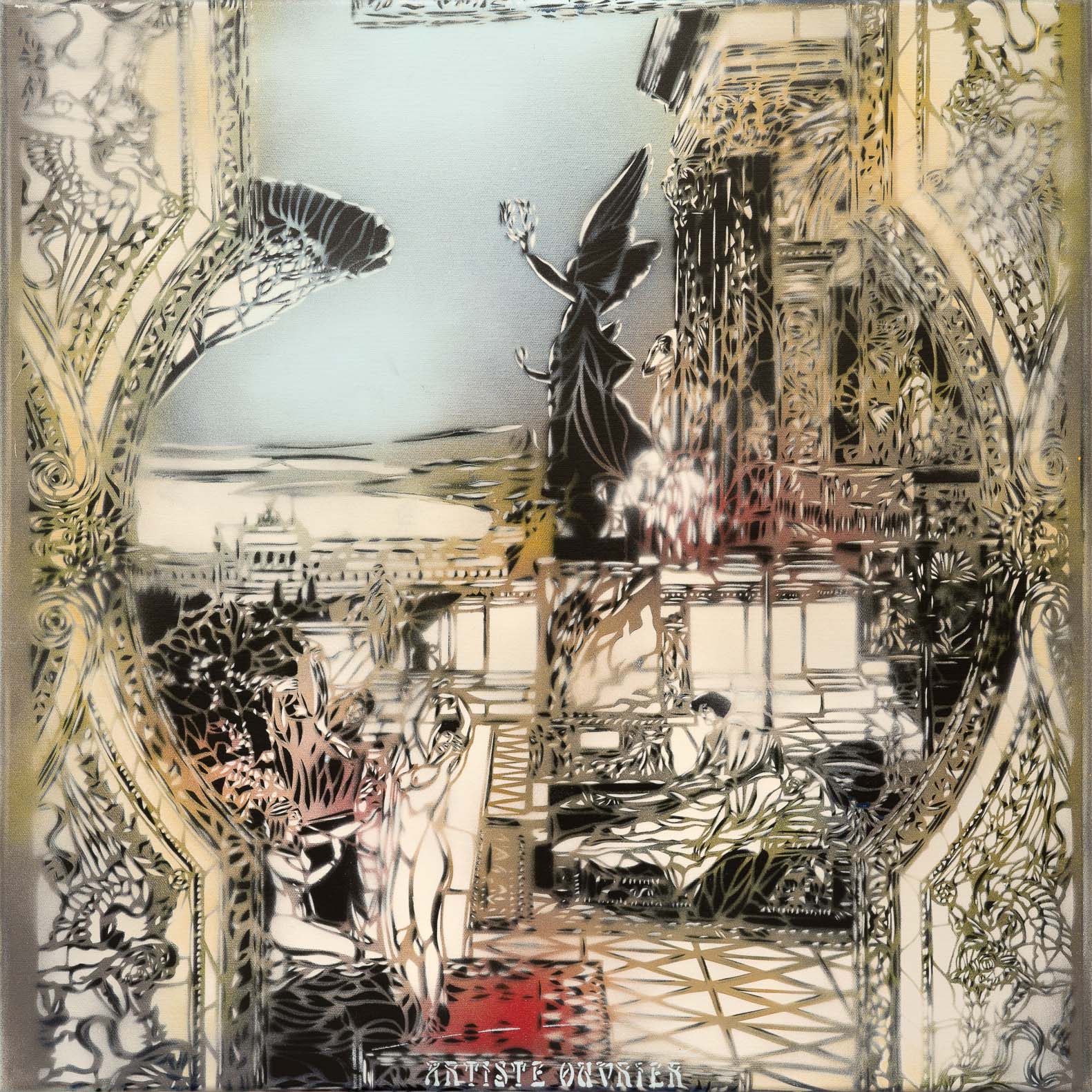 Der international anerkannter Streetartist Artiste Ouvrier gilt als einer der talentiertesten Schablonenkünstler seiner Generation. Der 1972 als Pierre-Benoit Dumont in Paris geborene französische Maler, dessen Stil sich durch ein hohes Maß an Detail und lebendigen Farben auszeichnet. Artiste Ouvriers Werk ist stark von der Kunst des 19. Jahrhunderts geprägt, insbesondere von der präraffaelitischen Malerei und dem Jugendstil. Seine Schablonen sind auf den Straßen von Paris, London, Barcelona, Neapel, Berlin, Hambourg, Batumi, Tiflis, Pondicherry, Bangkok, Takamatsu und vielen anderen Sädten zu sehen. Der Künstler stellte gemeinsam mit Persönlichkeiten der Pariser Street Artist Szene aus, wie etwa BLEK LE RAT oder JEF AEROSOL. 2008 wurde er von BANKSY zum «Can’s Festival» nach London eingeladen. Artiste Ouvrier ist der Gründer von WCA (Freie Universität für Schablonenkunst) unterrichtete eine Reihe junger Künstler in seiner Technik. Einige von ihnen sind inzwischen weltweit anerkannt, wie JANA & JS oder der Newcomer ADEY. Interessant ist auch, dass der heutige Maler in jungen Jahren klassische Gedichte veröffentlichte und mehrere Theaterstücke schrieb. Im Jahr 2000 gewinnt er mit seinem Puppenspiel «Yabon Lala» den Preis von «DEFI JEUNE». 2002 belohnte ihn die «SCAM» (Société civile des auteurs multimédia) mit ihrem berühmten Preis für sein Drehbuch «Addis Abeba Blues».